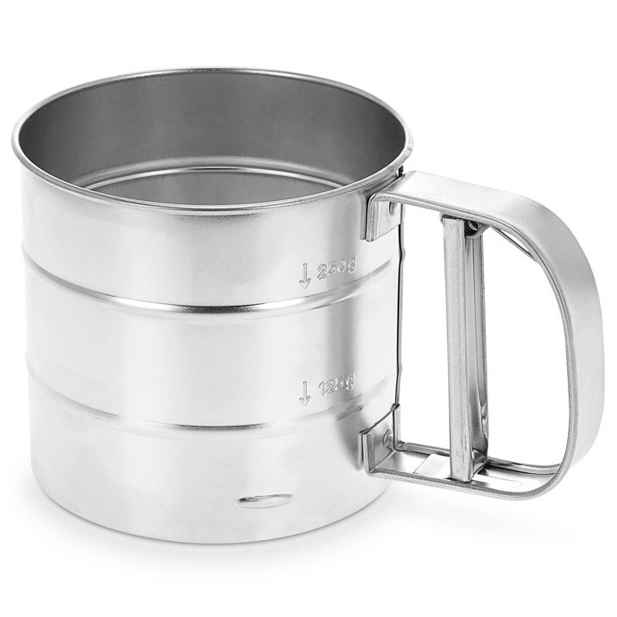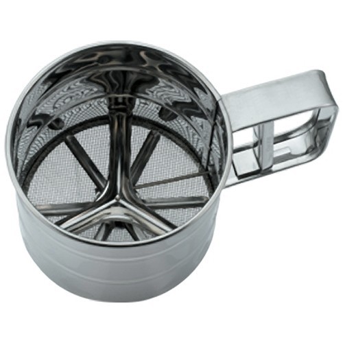 Meknisk sikt i rostfritt stål, med roterande blad nederst ovanför nätet, från Karl Wies. Maskstorleken på nätet är ca 1 mm.