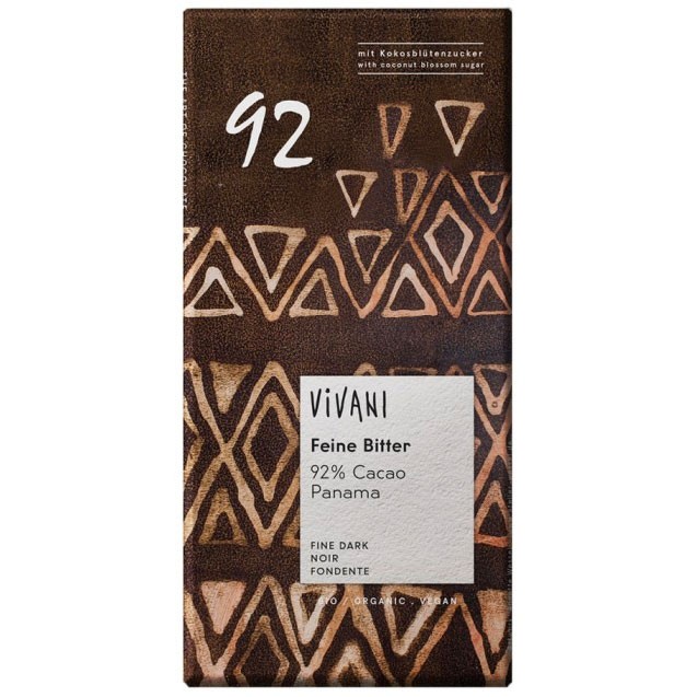 Denna mörka choklad innehåller 92 % mild panama-kakao och är sötad med 7 % kokosblomssocker.